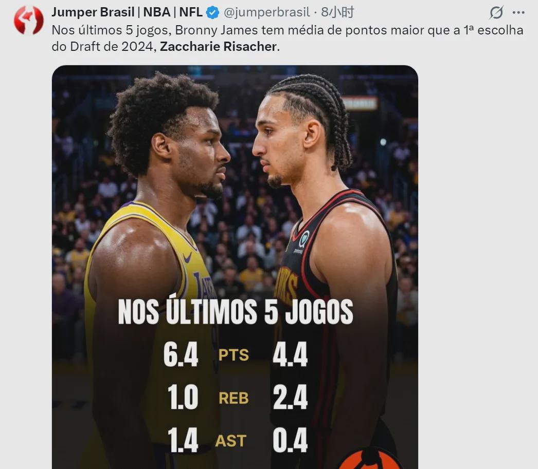 作为对比,损失了东契奇和里夫斯的湖人腾出很多出场时间,于是给了布朗尼更多的锻炼机会。最后5场比赛里,布朗尼场均拿到6.8分1篮板1.4助攻,三分球命中率还有35.3%,几乎是实现了对里萨谢的全包围。都说布朗尼是关系户,那么里萨谢是什么水准呢?